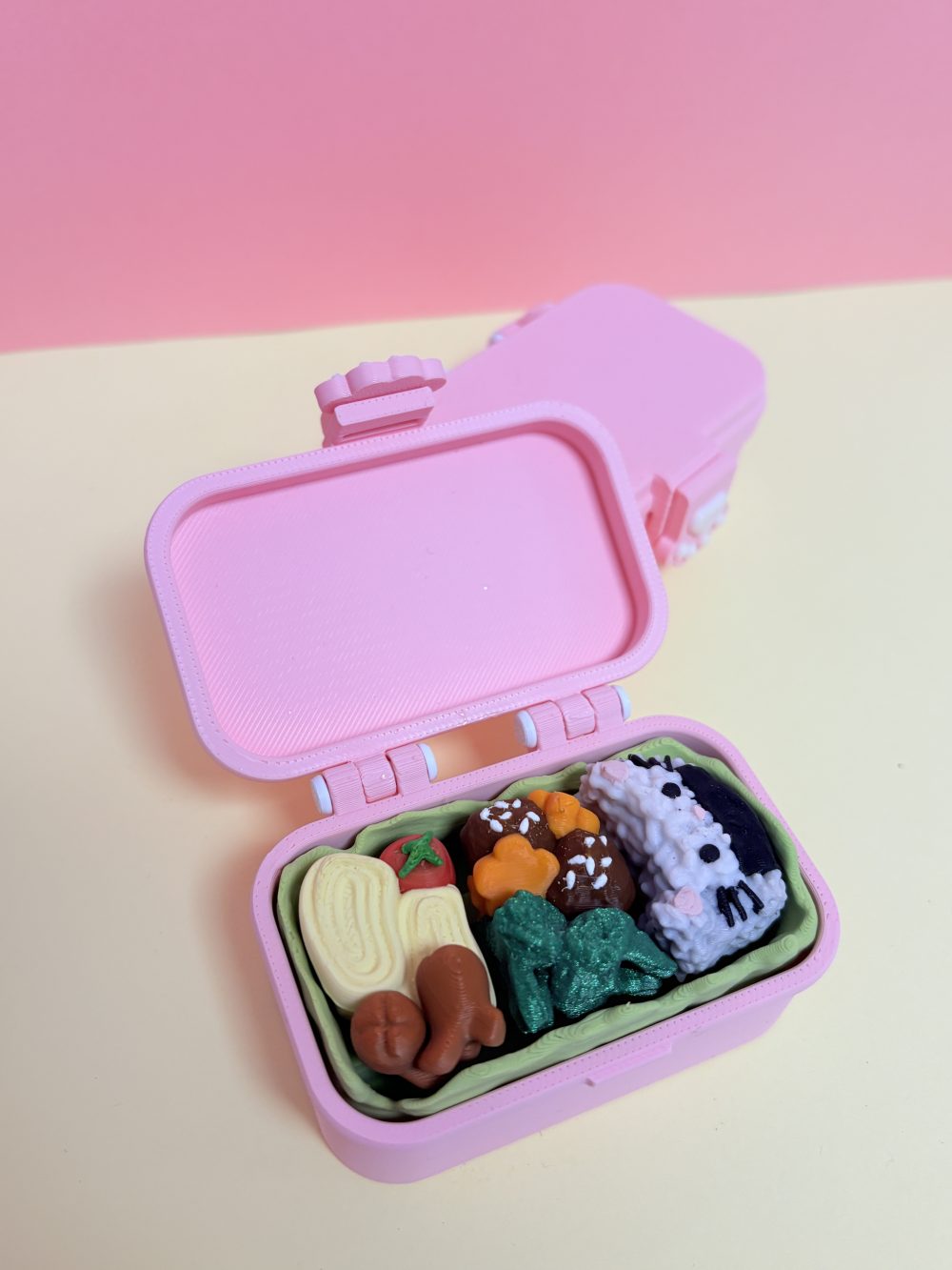 Entièrement imprimé en 3D dans mon atelier, ce bento cache 3 clickers antistress au clic-clic satisfaisant, parfait pour se détendre, s’occuper les mains ou compléter une collection de fidjets originaux ✨