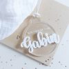 Vous pourrez choisir la couleur du mot en plexi au centre, une gravure peut être faite sur le haut et le bas (indiquez bien séparement les inscriptions de la gravure du haut et celle du bas si c’est le cas svp)