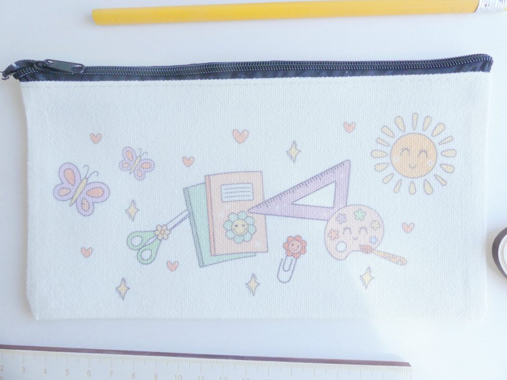 • une trousse avec motifs rentrée et un prénom de votre choix inscrit au dos