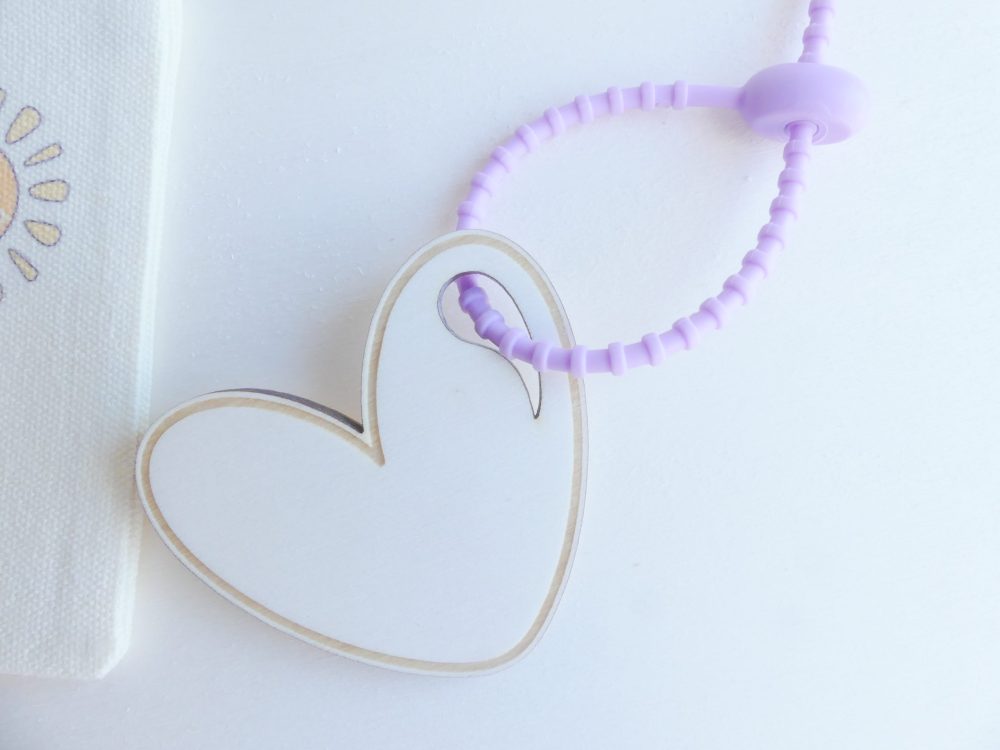 • un coeur en bois avec gravure du prénom pour accrocher au sac ou aux clefs!