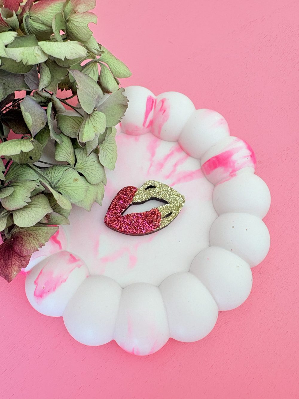 Broche bouche pailletée