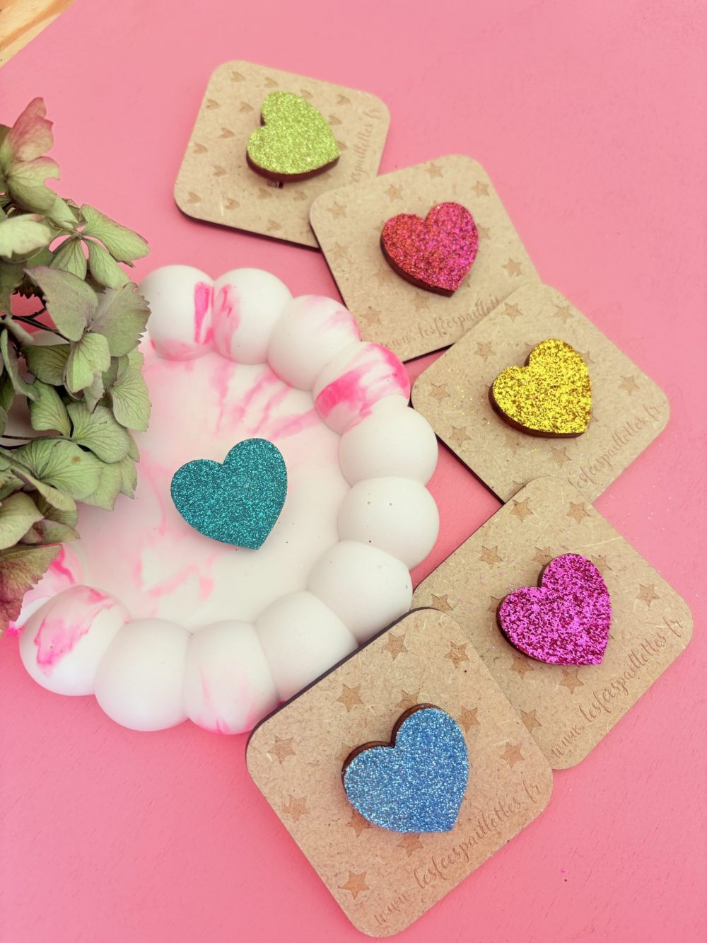 broche coeur à paillettes