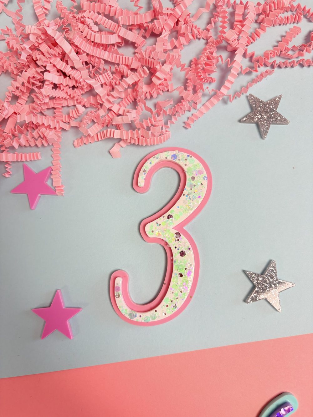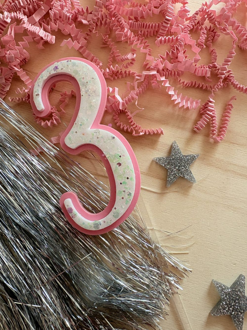 Topper chiffre glitter rose blanc (pic amovible)