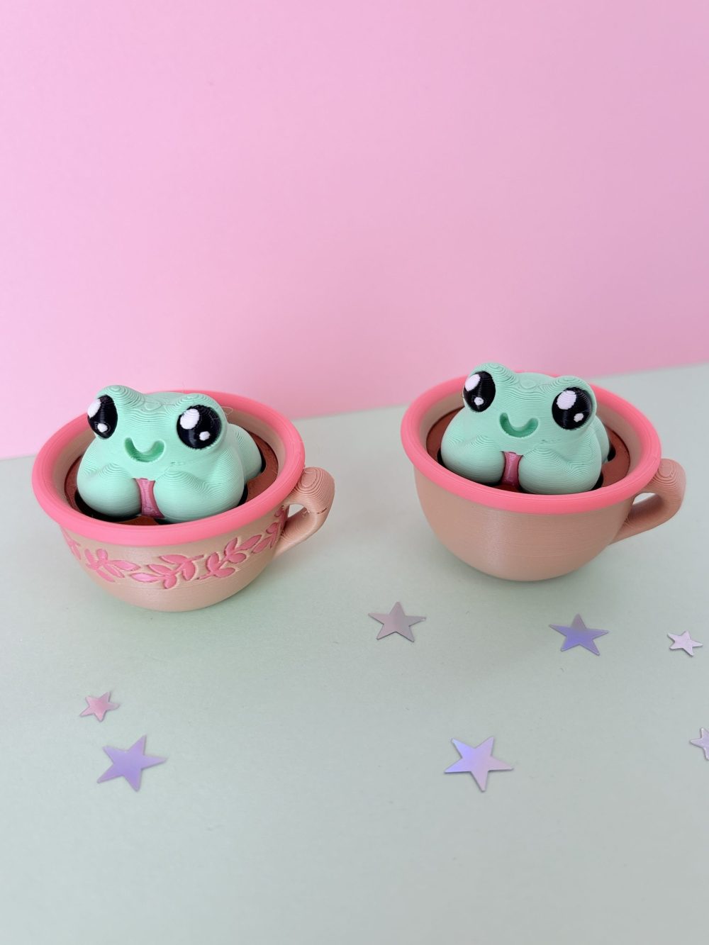 Voici le Clicker âGrenouille Zen Teatitudeâ, un fidget antistress trop mignon oĂč une petite grenouille se repose paisiblement dans une tasse đžđš