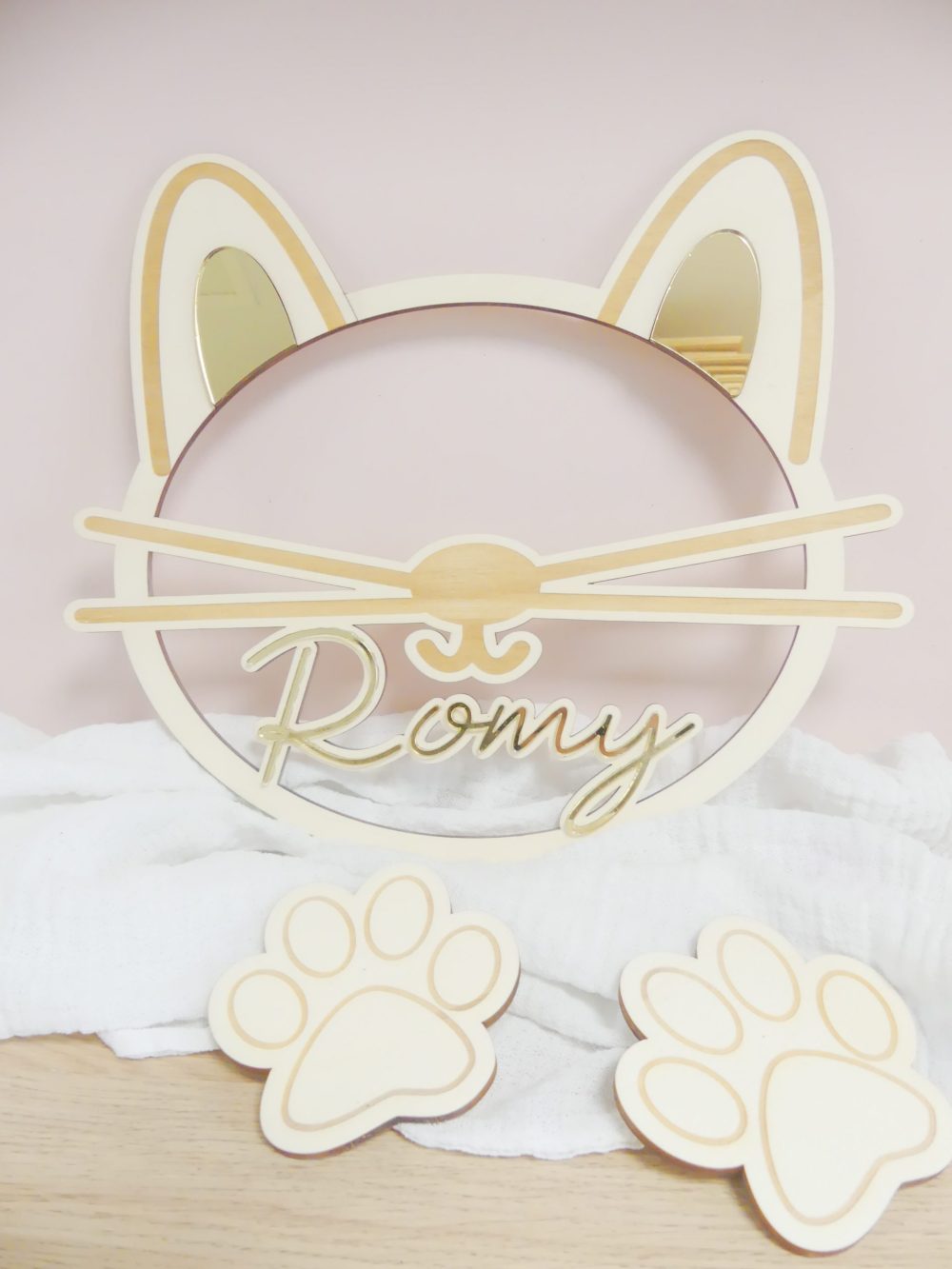 Une jolie couronne chaton avec des détails en acrylique miroir de votre choix.