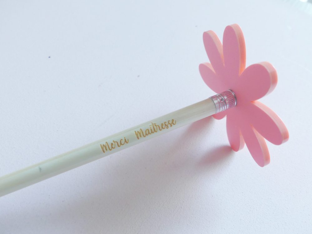 Un crayon de papier gravé aux mots de votre choix 19cm gomme incluse, avec une jolie fleur à positionner sur le haut du crayon pour un effet poétique