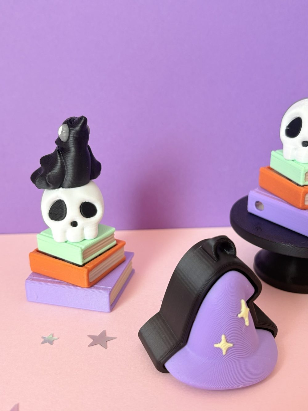 Fidget Halloween mystique avec crâne et livres anciens + son présentoir noir🕯️