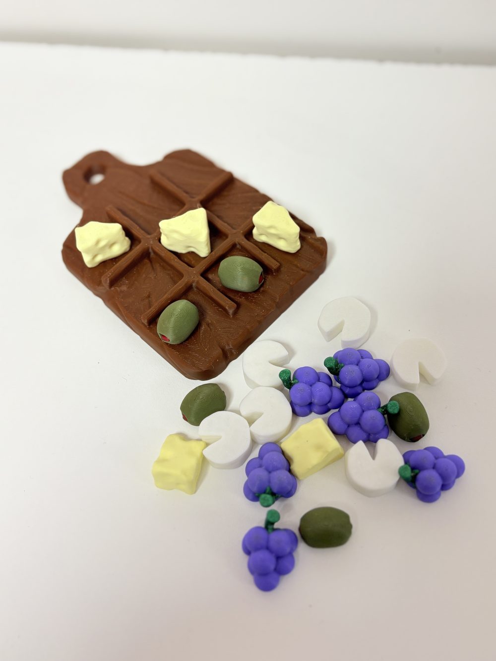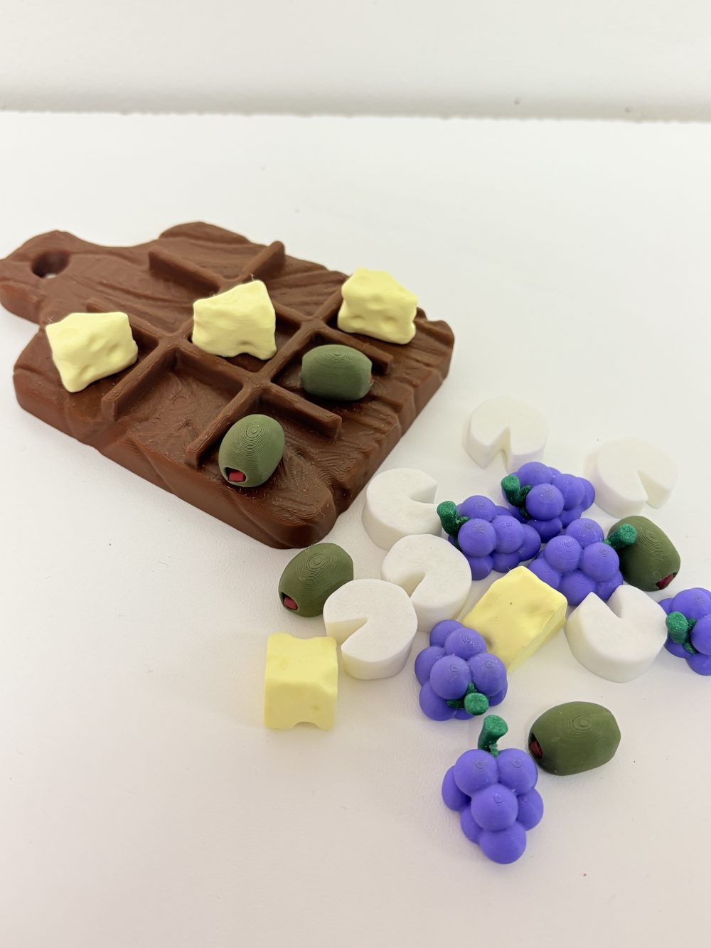 Voici la planche apéro morpion, où les pions prennent la forme de raisin, camembert, olive et fromage…