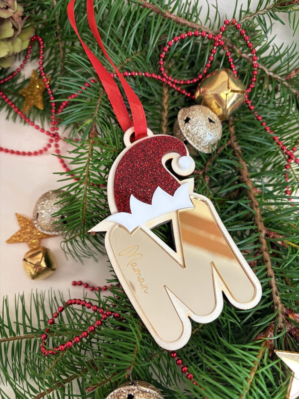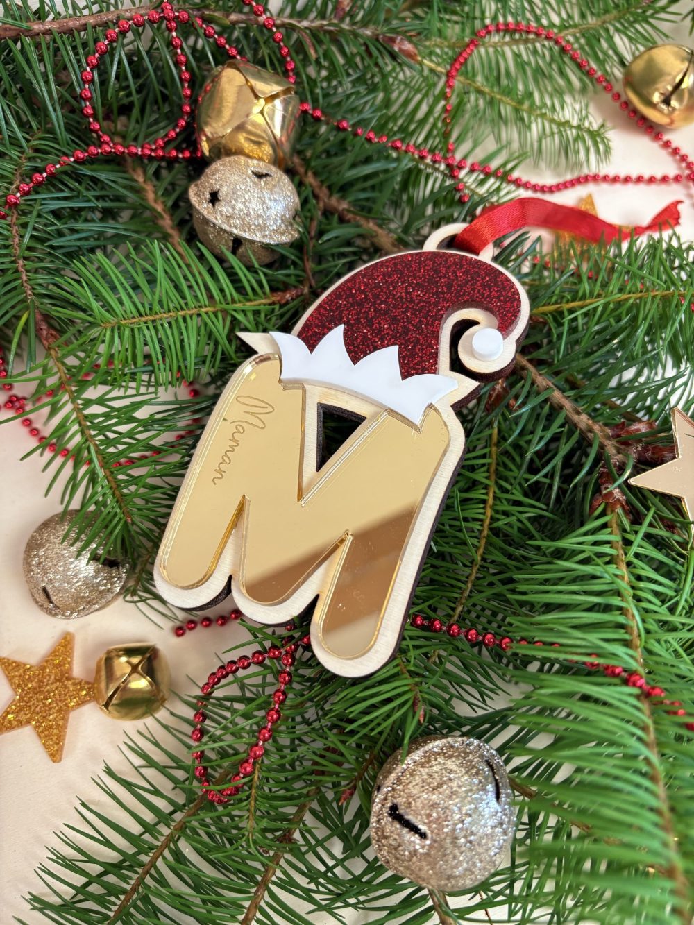 Choisissez le prénom , la couleur de l’acrylique miroir pour la lettre , et la couleur des paillettes pour le bonnet .