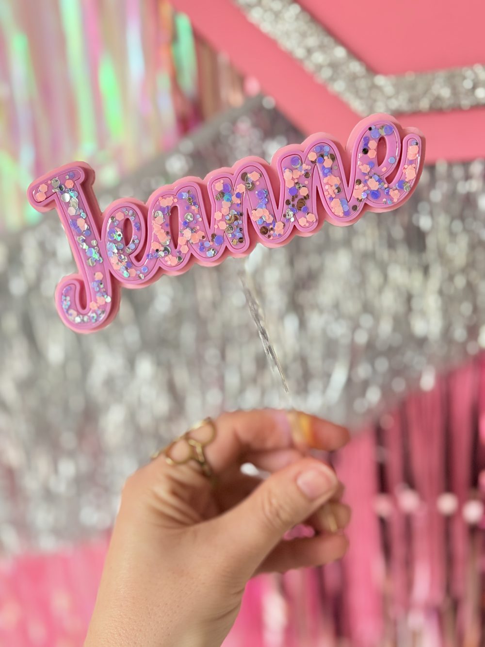 Parfait pour célébrer vos moments les plus spéciaux, ce topper est entièrement recouvert de paillettes ultra-brillantes qui capturent la lumière sous tous les angles.