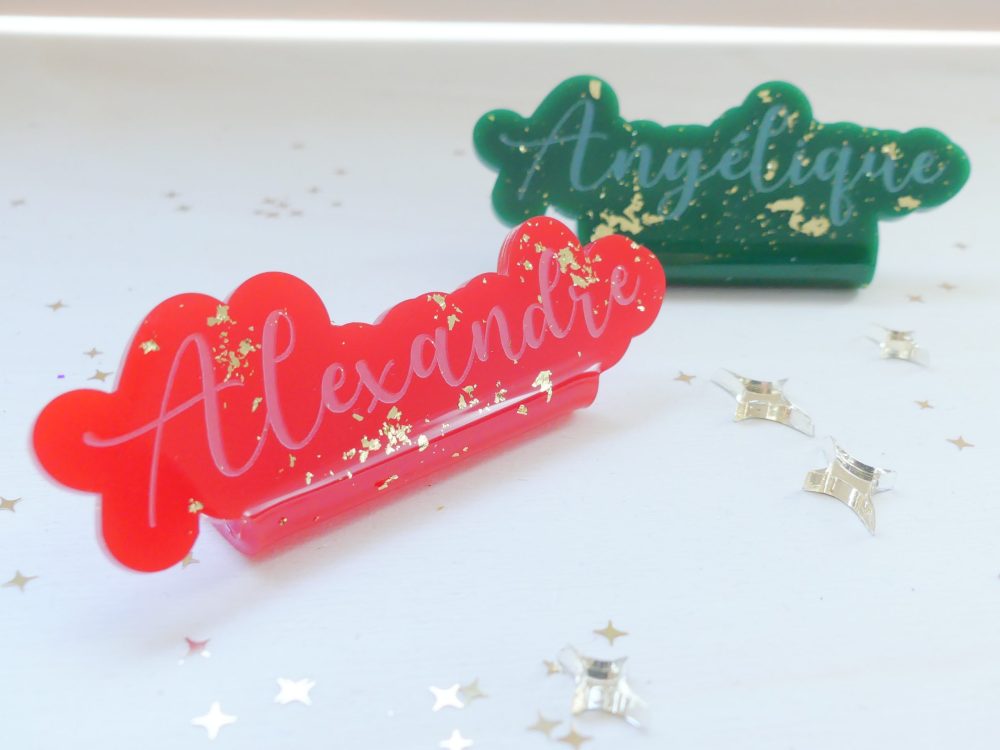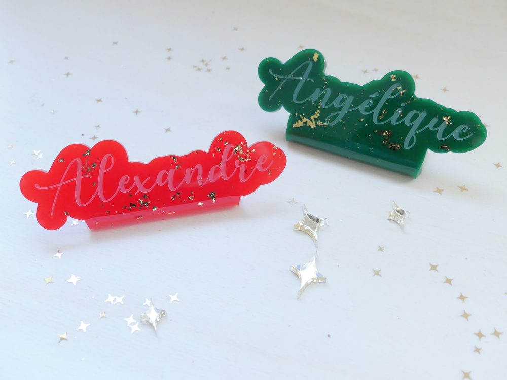 Marque place acrylique avec pépite dorée ou argentée dessus