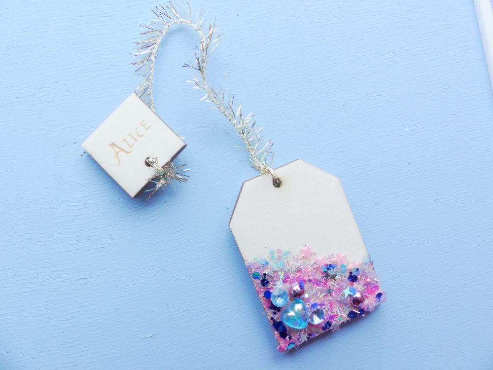 Chaque modèle est unique vous pouvez choisir le prénom à graver et les couleurs de paillettes sur le sachet .