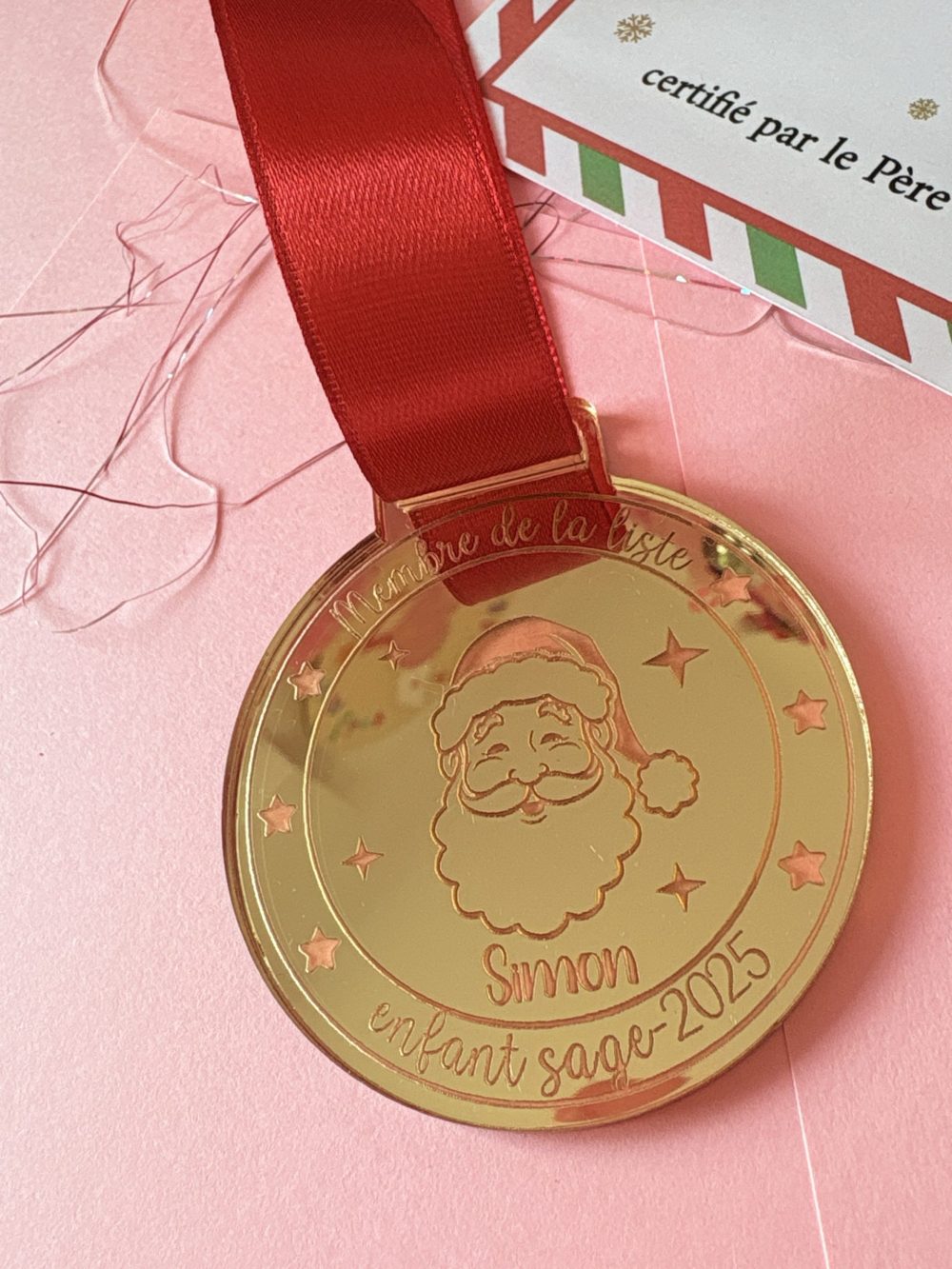 Cette médaille du Père Noël en acrylique miroir doré est un cadeau idéal pour récompenser les enfants sages en cette période de fêtes ! Élégante et brillante, elle captera l’attention des petits, qui seront ravis de recevoir cette récompense spéciale de la part du Père Noël en personne.