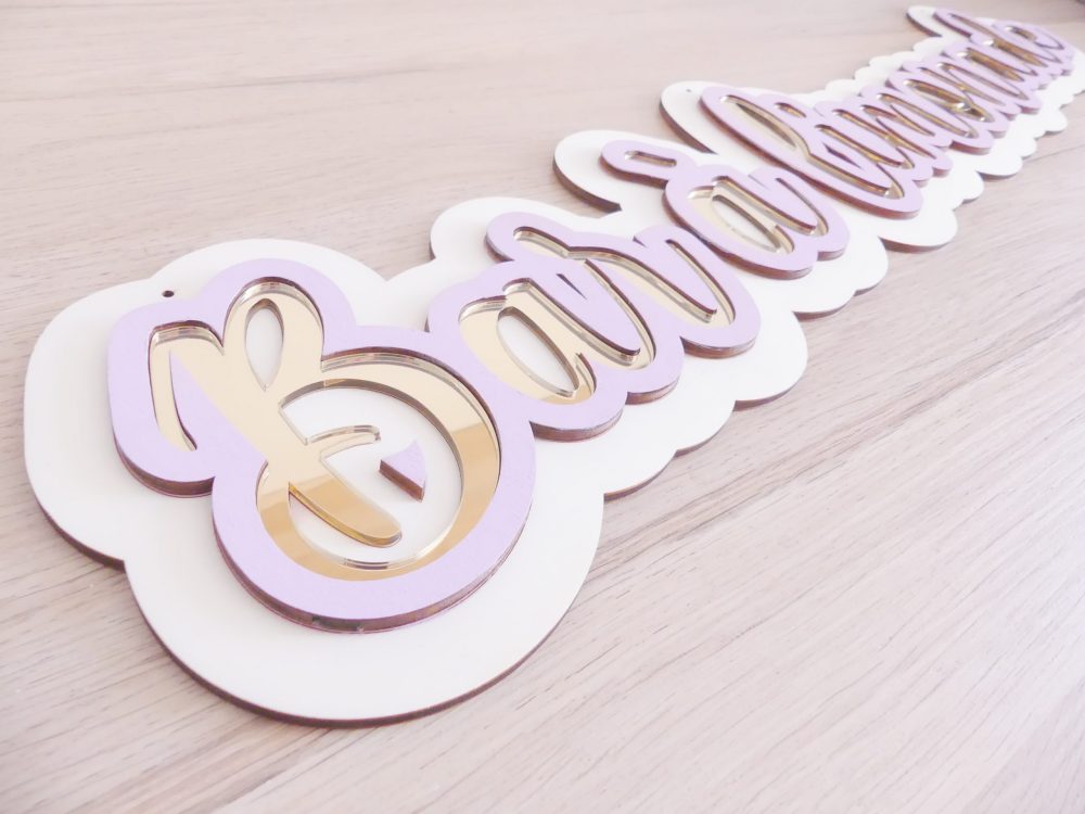 Le fond est en bois de peuplier , ensuite vous pouvez choisir la couleur du contour (sur la photo il est parme) et l’intérieur sera en acrylique miroir (or,argent ou bronze)
