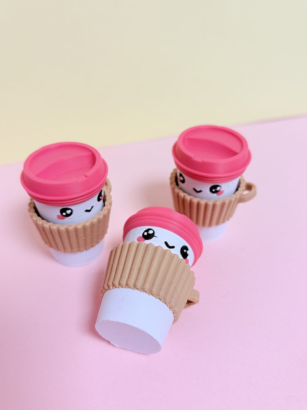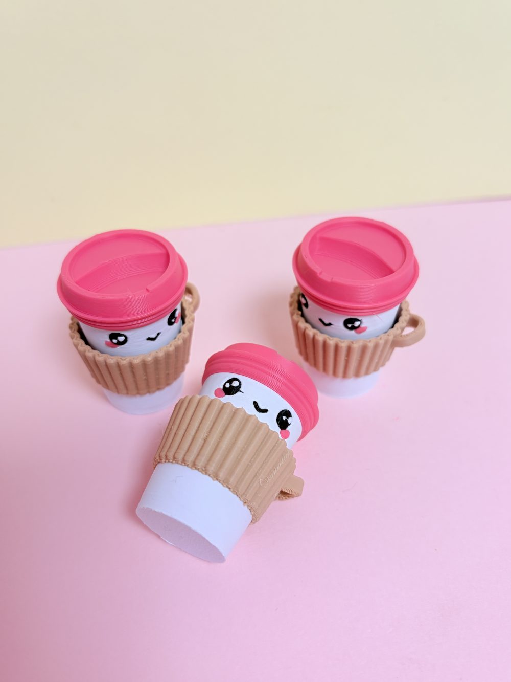 - 🎀 Design : Tasse à emporter avec visage kawaii (type Starbucks)