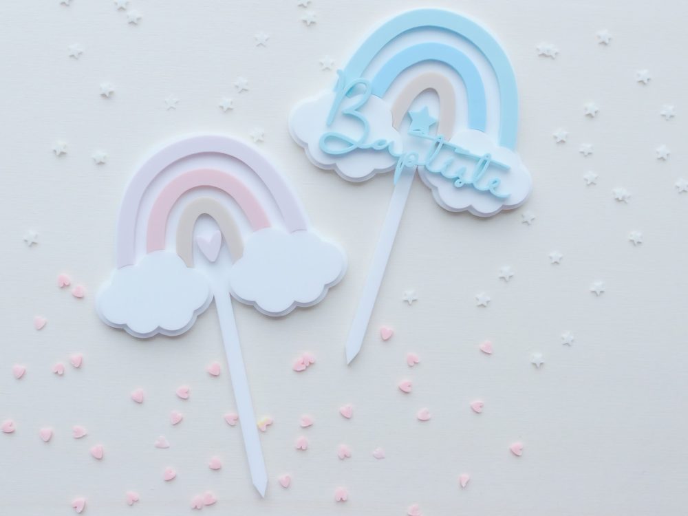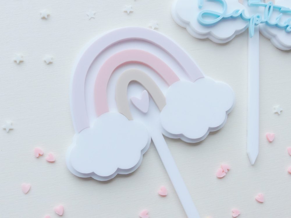 Cake topper Arc en ciel tons pastels, idéal pour une naissance ou une baby shower, gender reveal !