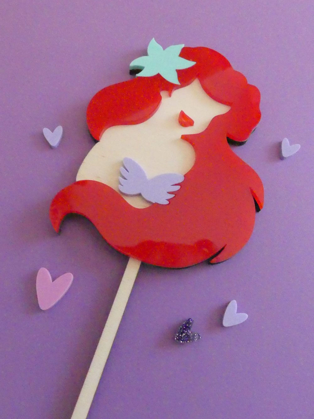 Topper Ariel , le prénom peut être gravé sur le bois au dessus de son maillot